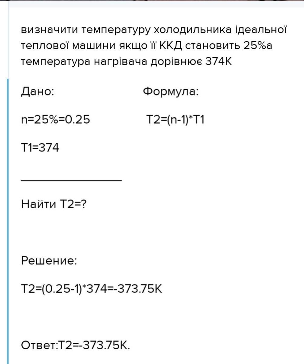 Визначте температуру холодильника ідеальної теплової машини якщо за температури нагрівника 27С° температкри холодильника 3С°
