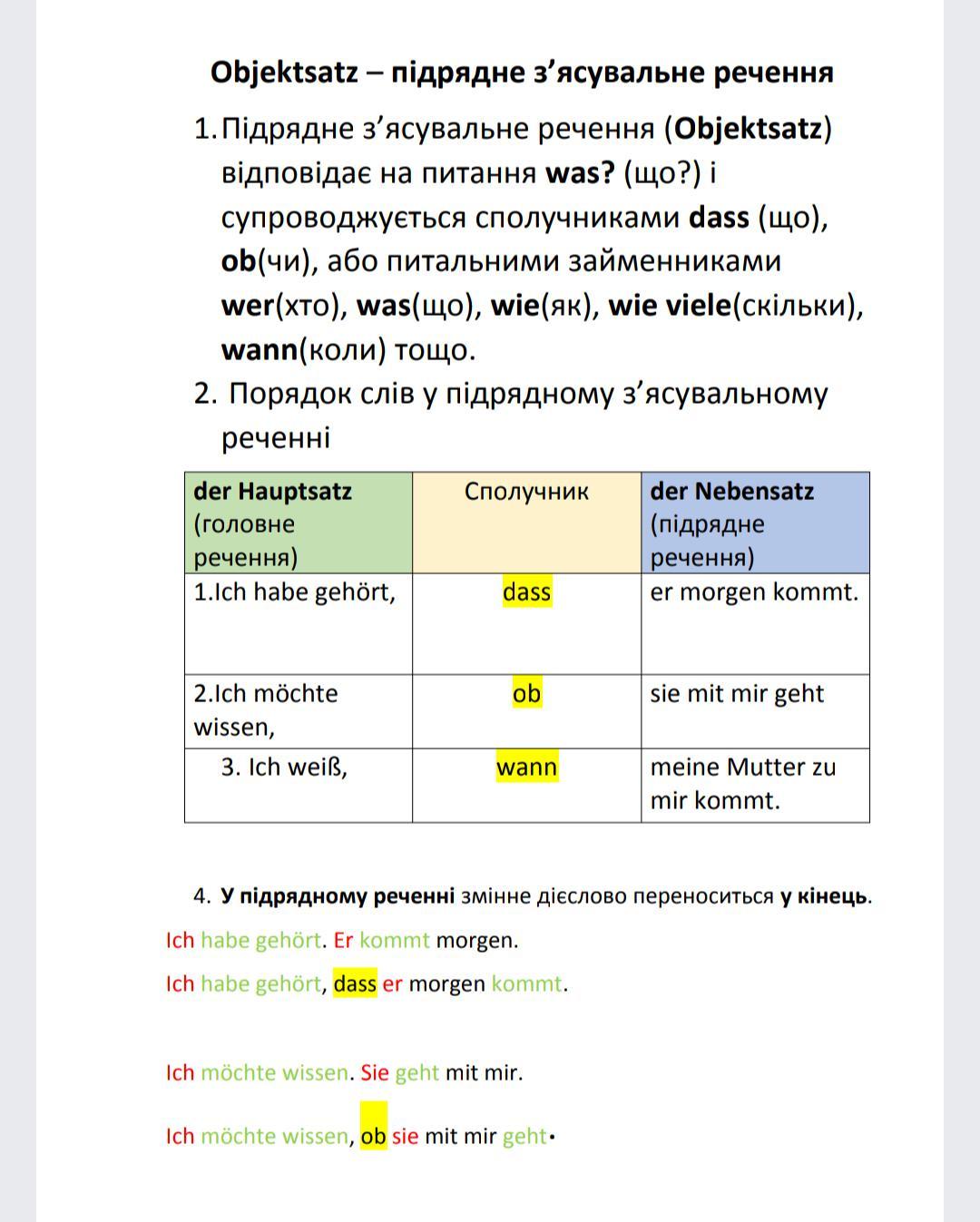 Срочно помогите немецкий сделать самостоятельную по objektsatz, пример и задание на скринах