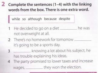 Complete the sentences (1-4) with the linking words from the box. There is one extra word