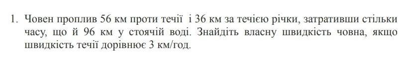 56 км проти течії ріки катер проплив за: (56/х-3) годин.