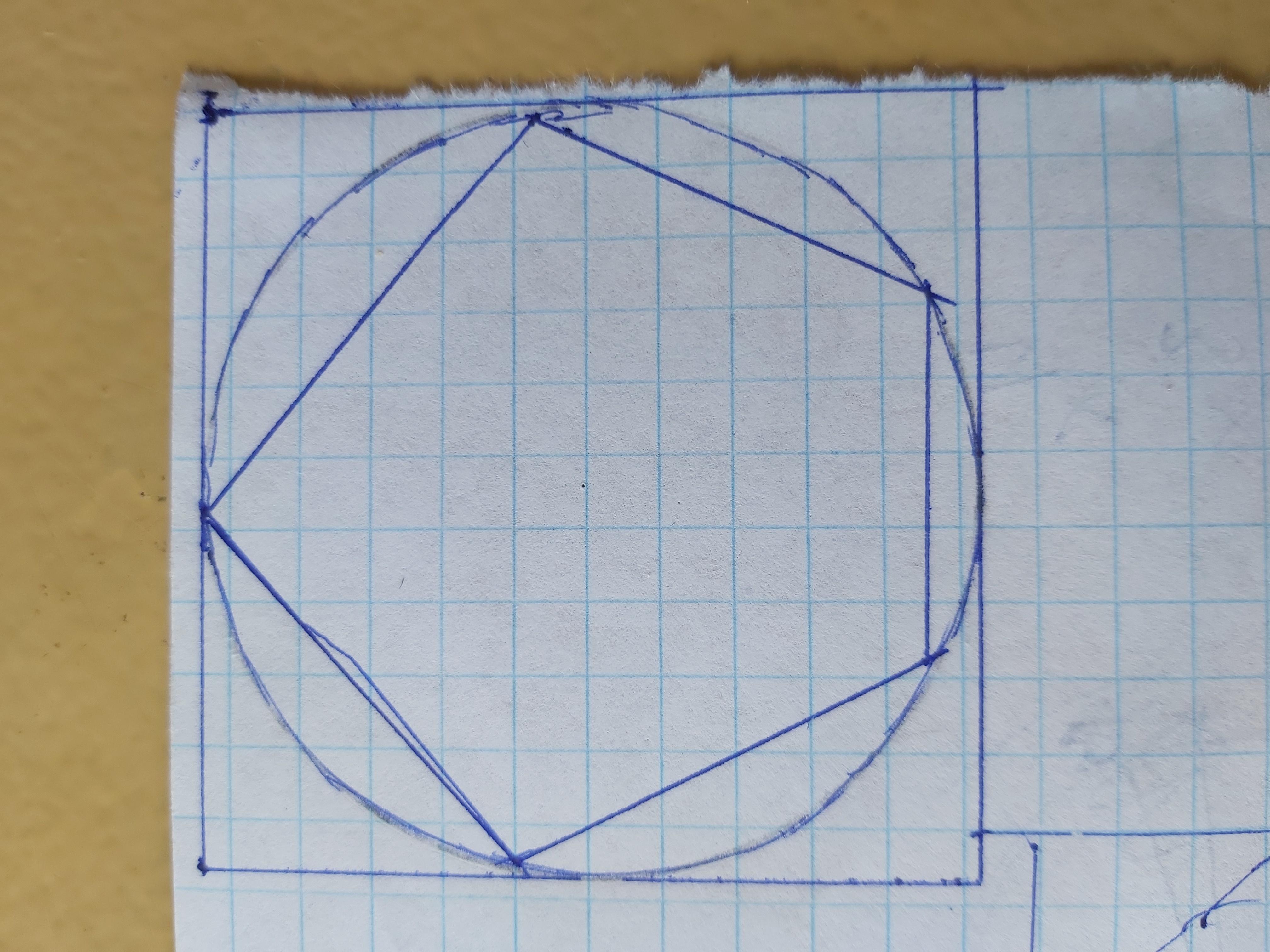 Накресліть коло, впишіть у нього п'ятикутник та опи- шіть навколо нього чотирикутник,