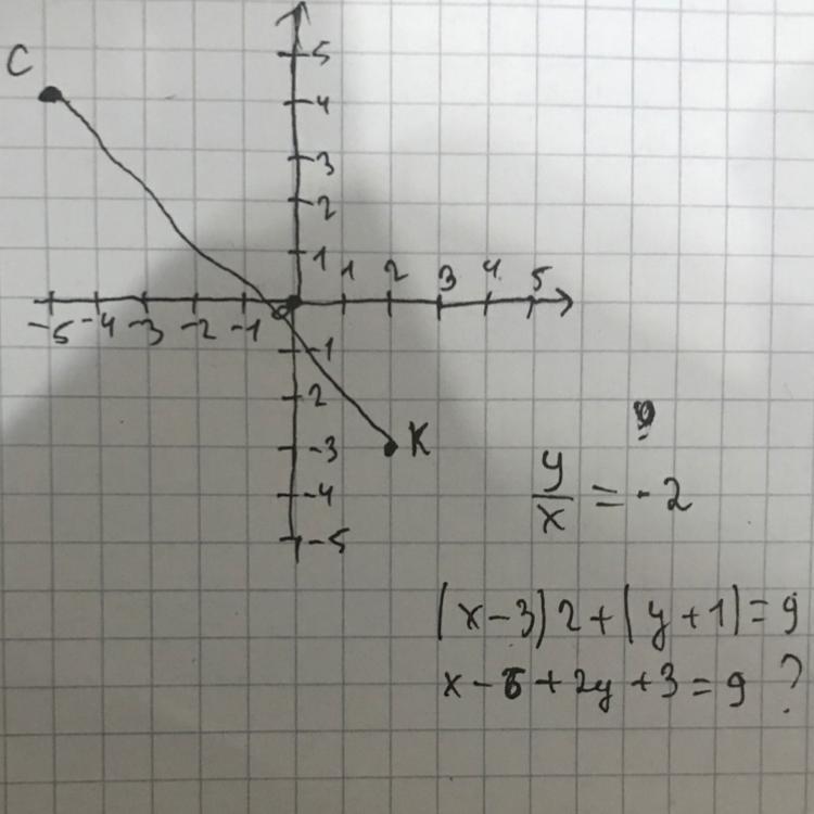 При паралельному перенесенні точка С(-5;4) переходить у точку К (2;-3). Укажіть прообраз кола (x-3)2+(y+1)=9 при цьому паралельному перенесенні.