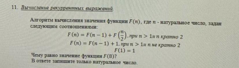 Алгоритм вычислення значення функции F(п), где п-натуральное число, задан