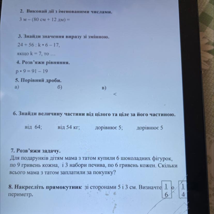 Математика 3 клас: 6,7,8 запитання допоможіть будь ласка