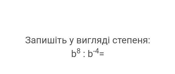 Запишіть у вигляді степеня: b8 : b-4=