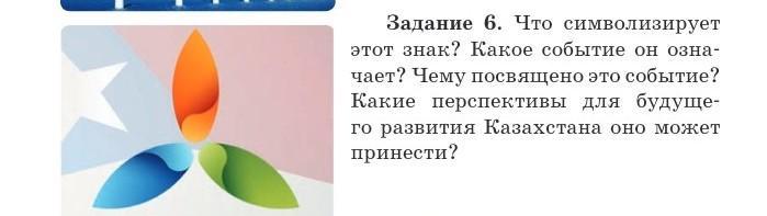 Задание 6. Что символизирует этот знак? Какое событие он означает? Чему посвящено это событие, Какие перспективы для будущего развития Казахстана оно может принести?