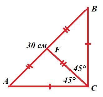 Следовательно, AF = CF = BF = AB/2 = 30/2 = 15 см.