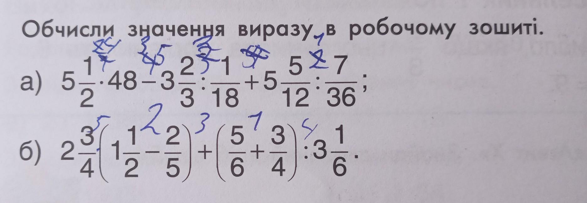 8. Обчисли значення виразу, в робочому зошиті. 231 527 3 18 12 36 a) 5-48-3 +5- 2 6) 23 (12 - 2 5 3 1 + + 2 5 6 4 :3 6