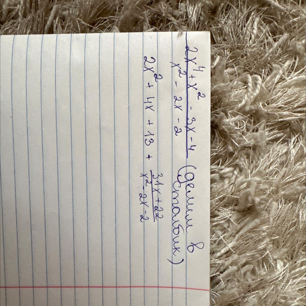 Виділити цілу частину з раціонального дробу (2x^4+x^2-3x-4)/(x^2-2x-2)