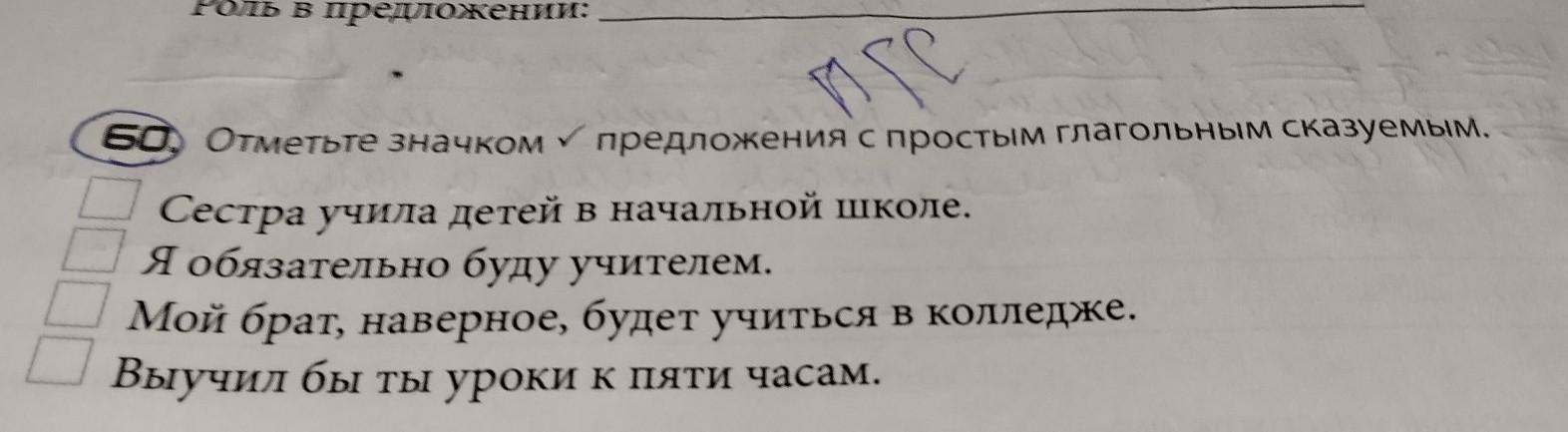 Отметьте значком √ предложения с простым глагольным сказуемым.
