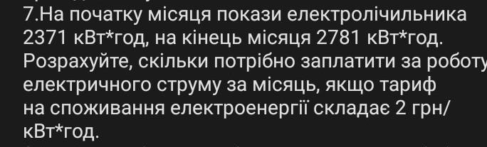 Щоб розрахувати вартість спожитої електроенергії за місяць, необхідно відняти покази лічильника на початку місяця від показів на кінець місяця, щоб отримати кількість спожитої електроенгії за місяць: