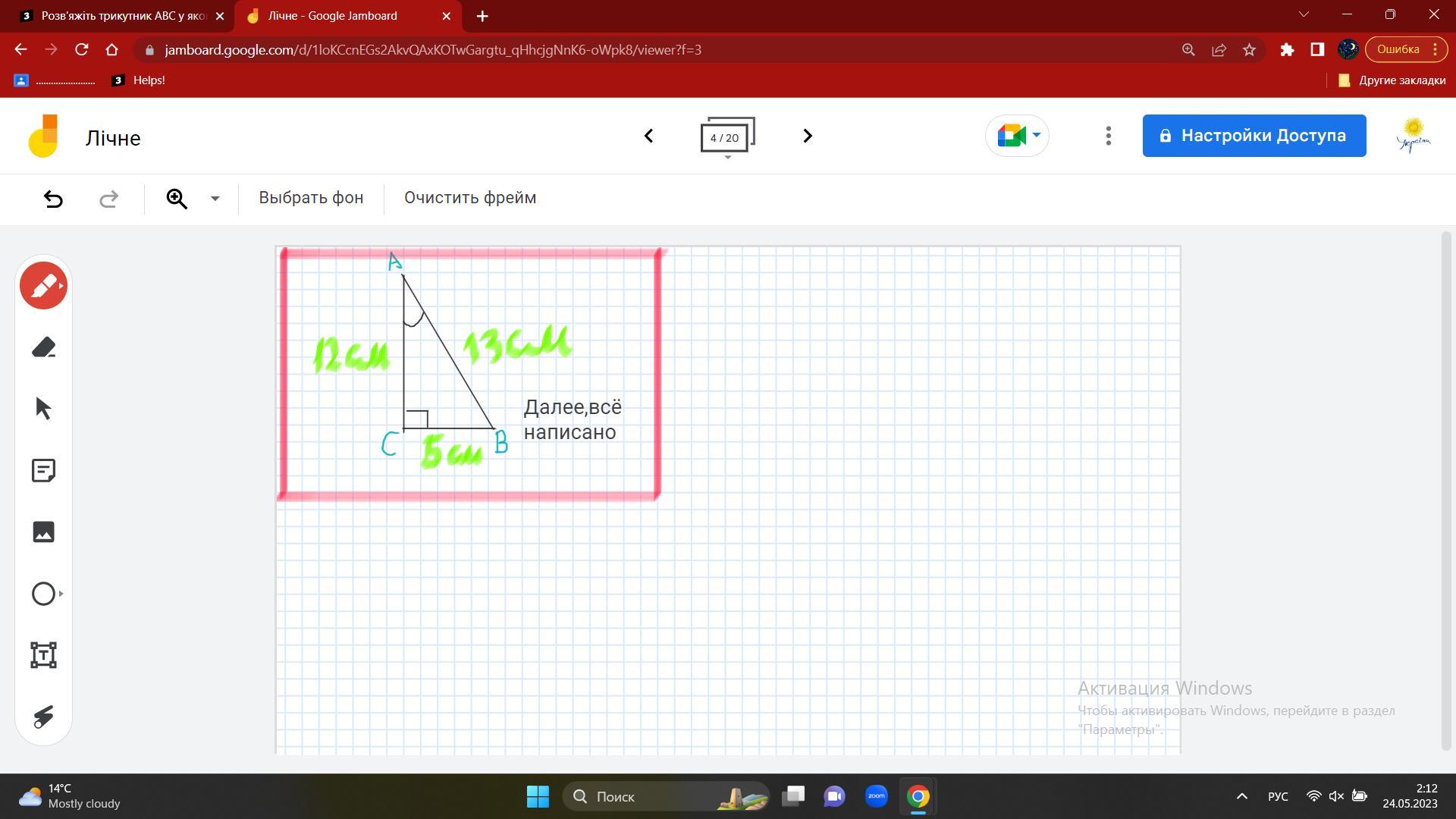 3) ∠В = ∠А = 90°; ∠В = 90° - 23° = 67°