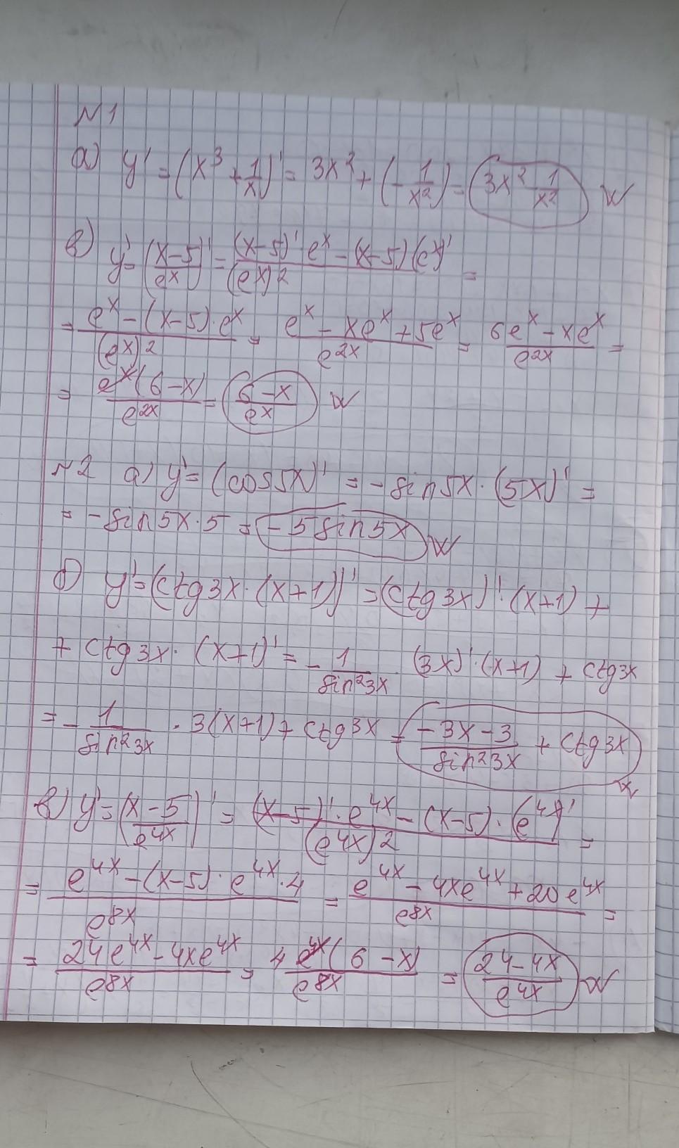 не дает норм фото сделать. Я нашел производные по формулах и знаниях о них формулы найдешь в интернете. Таблица производных