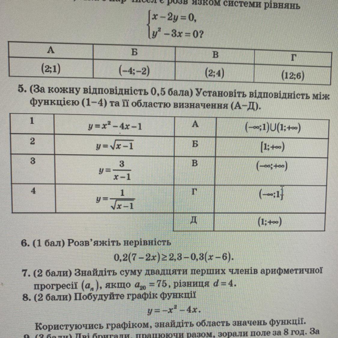 Допоможіть будь ласка!!!! 5 завдання , Установіть відповідність між функцією (1-4) та її областю визначення (А-Д)