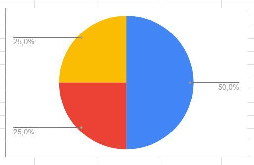 Какое целое значение ему необходимо написать в ячейку B1, чтобы построенная диаграмма по диапазону A2:С2 соответствовала круговой диаграмме на изображении выше?