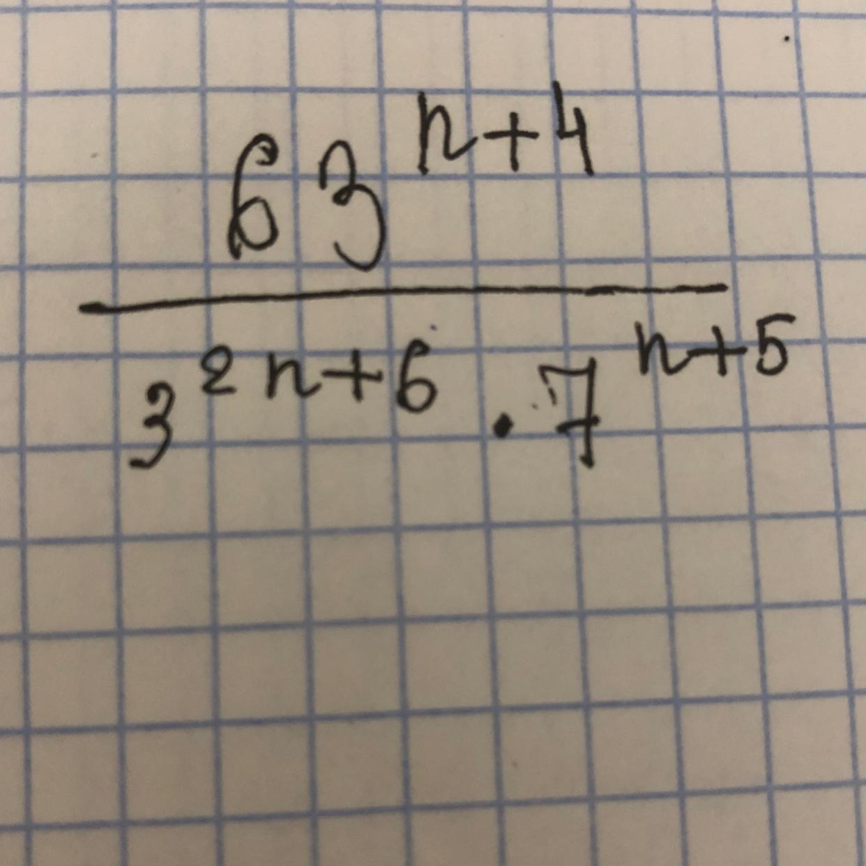63ⁿ⁺⁴/( 3²ⁿ⁺⁶ * 7ⁿ⁺⁵ ) = ( 3² * 7 )ⁿ⁺⁴/( 3²ⁿ⁺⁶ * 7ⁿ⁺⁵ ) = ( 3²ⁿ⁺⁸ * 7ⁿ⁺⁴ )/( 3²ⁿ⁺⁶ X