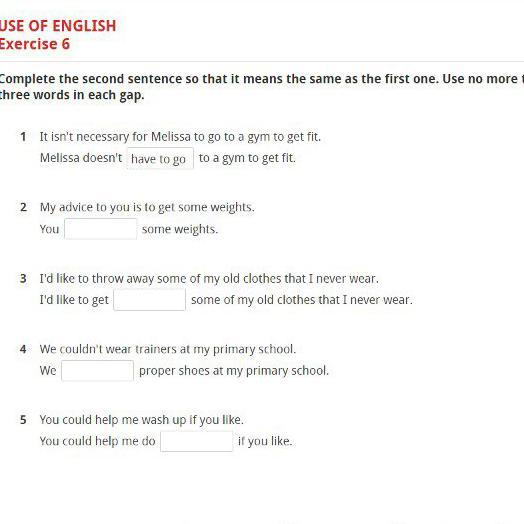 Complete the second sentence so that it means the same as the first one. Use no more than three words in each gap.