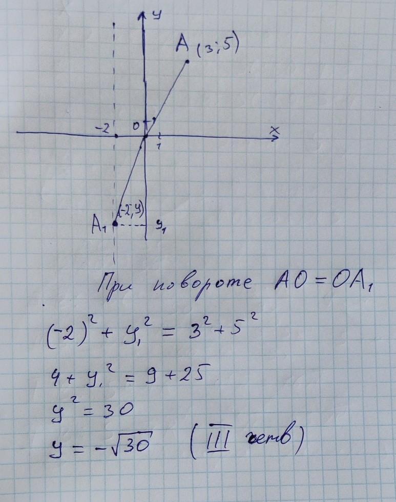 Точку с координатами (3;5) повернули по отношению к началу координат.Найдите ординату полученной точки,если абцисса равна -2 и точка находится в третьей четверти