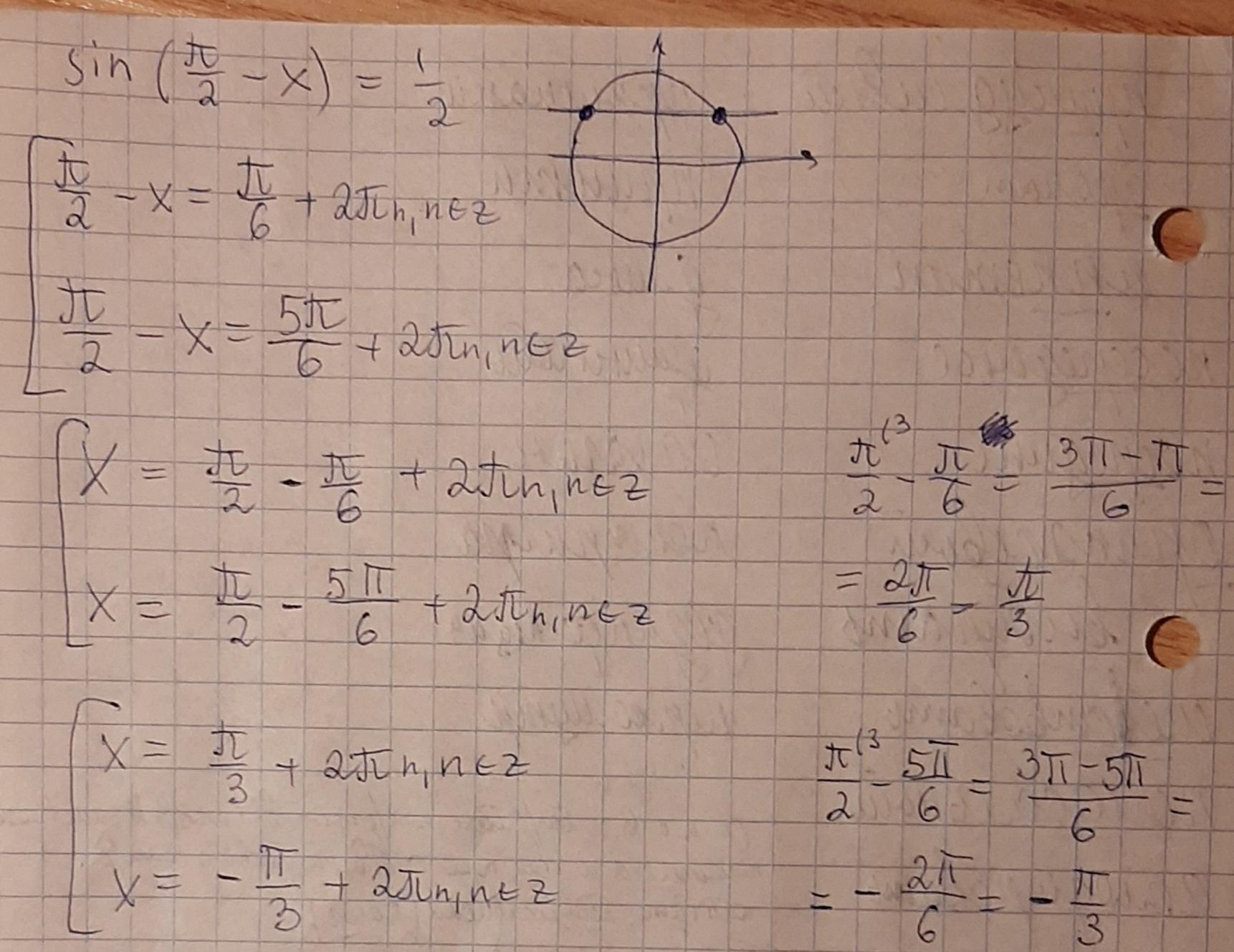 решите уравнение sin(п/2-x)=1/2