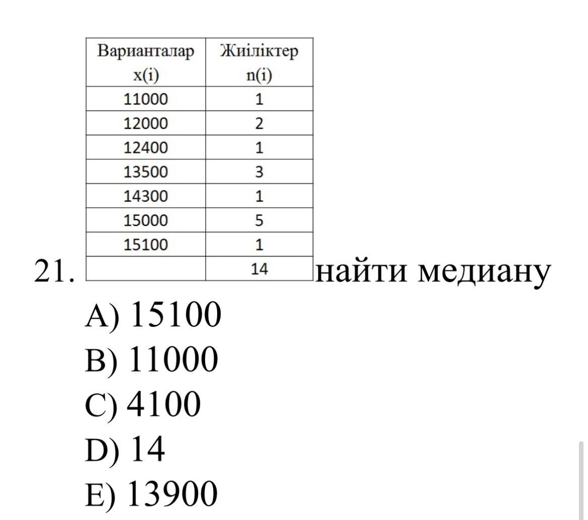 Медиана = (13 500 + 14 300) : 2 = 27 800 : 2 = 13 900