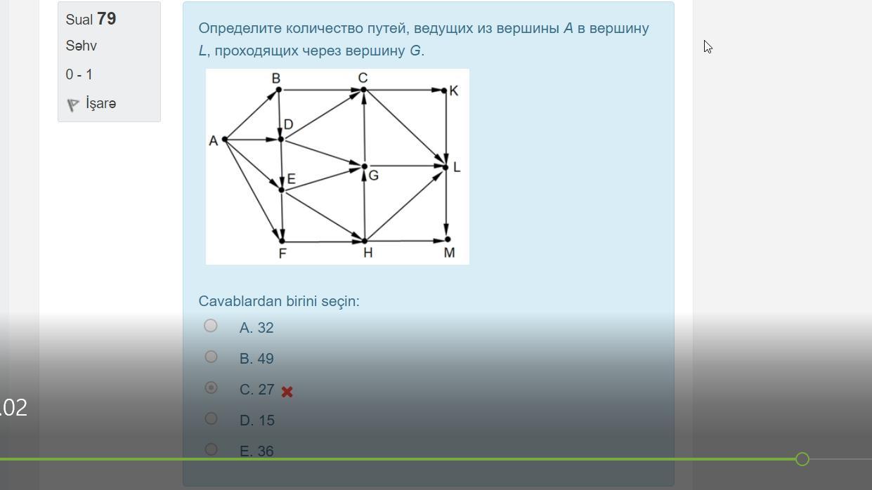 Найдите количество путей ведущих из вершины A в вершину L, проходящих через вершину G