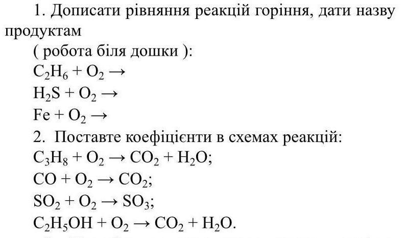 2H2S(сероводород)+ 3O2(кислород )→ 2SO2( оксид серы)+ 2H2O (вода)