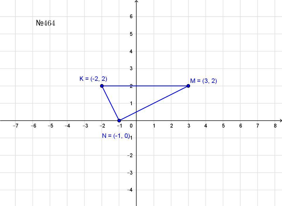 № 464. Построить треугольник по координатам его вершин: 1) K (-2; 2), M (3; 2), N (-1; 0);