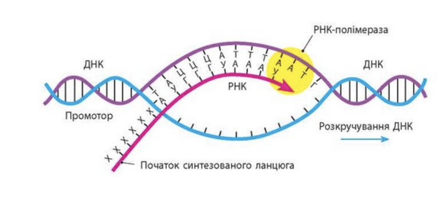 Транскрипція - це синтез РНК, що відбувається в живих клітинах, з використанням ДНК в якості матриці, відбувається перенесення генетичної інформації з ДНК на РНК.
