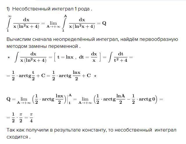 Так как получили в результате константу, то несобственный интеграл сходится .