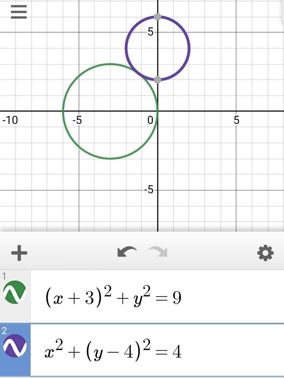 Як розміщені кола (дотикаються, перетинаються, не мають спільних точок), задані рівняннями : а) (х-3)²+(у+2)²=4 і х²+ у²-2х-2у=14; б) х²+ у²+6х= 0 і х²+ у²-8у=-12; в)х²+ у²+8х-6у=0 і (х-2)²+(у+1)²=1; г) х²+ у²-4х-8у=-12 і х²+у²-10х-2у=-24?