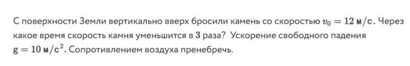 t = (Vo-V) / g = (12-4) / 10 = 0.8 c