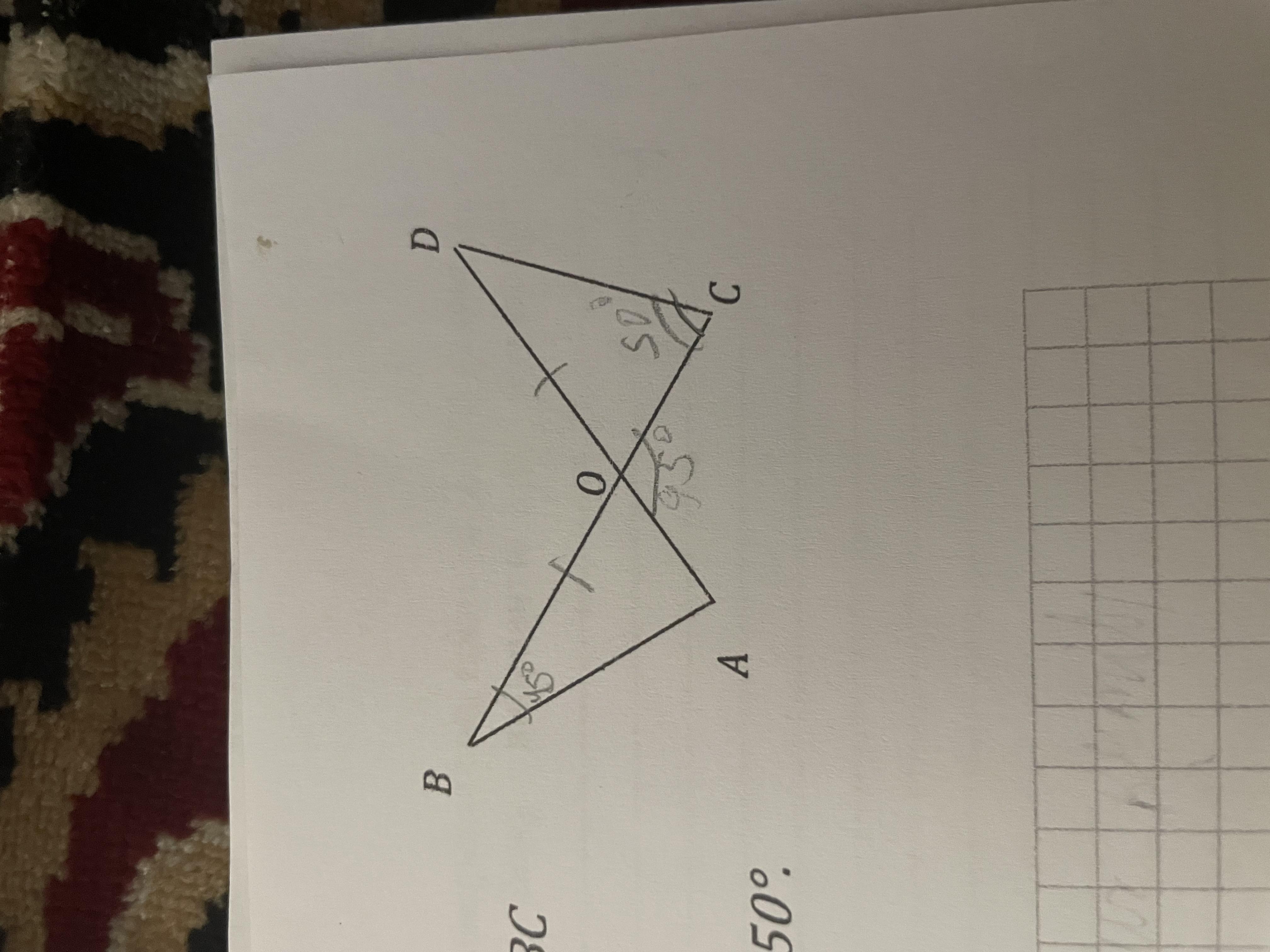 BO=DO, LABC=45°, LAOC=95°, LBCD=50°.