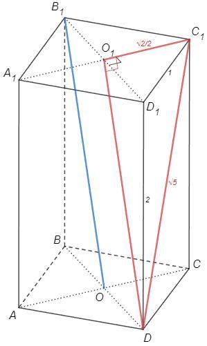 B5. ABCDA1B1C1D1 - правильная призма, боковое ребро которой в два раза больше ребра основания. Точка О- центр грани ABCD. Найдите cos a, где а - угол между прямыми В1 О и С1D. В ответ за- пишите 2√10cosa.