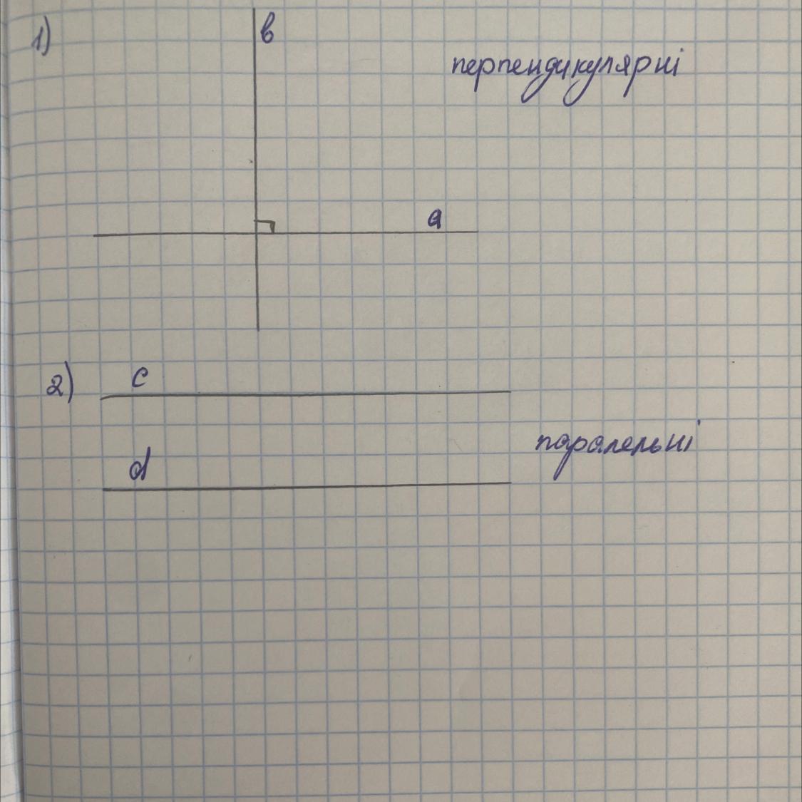 4. Накресли перпендикулярні прямі а і б та паралельні прямі с і d.