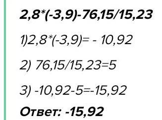 2,8•(-3,9)-76,15:15,23= -15,92