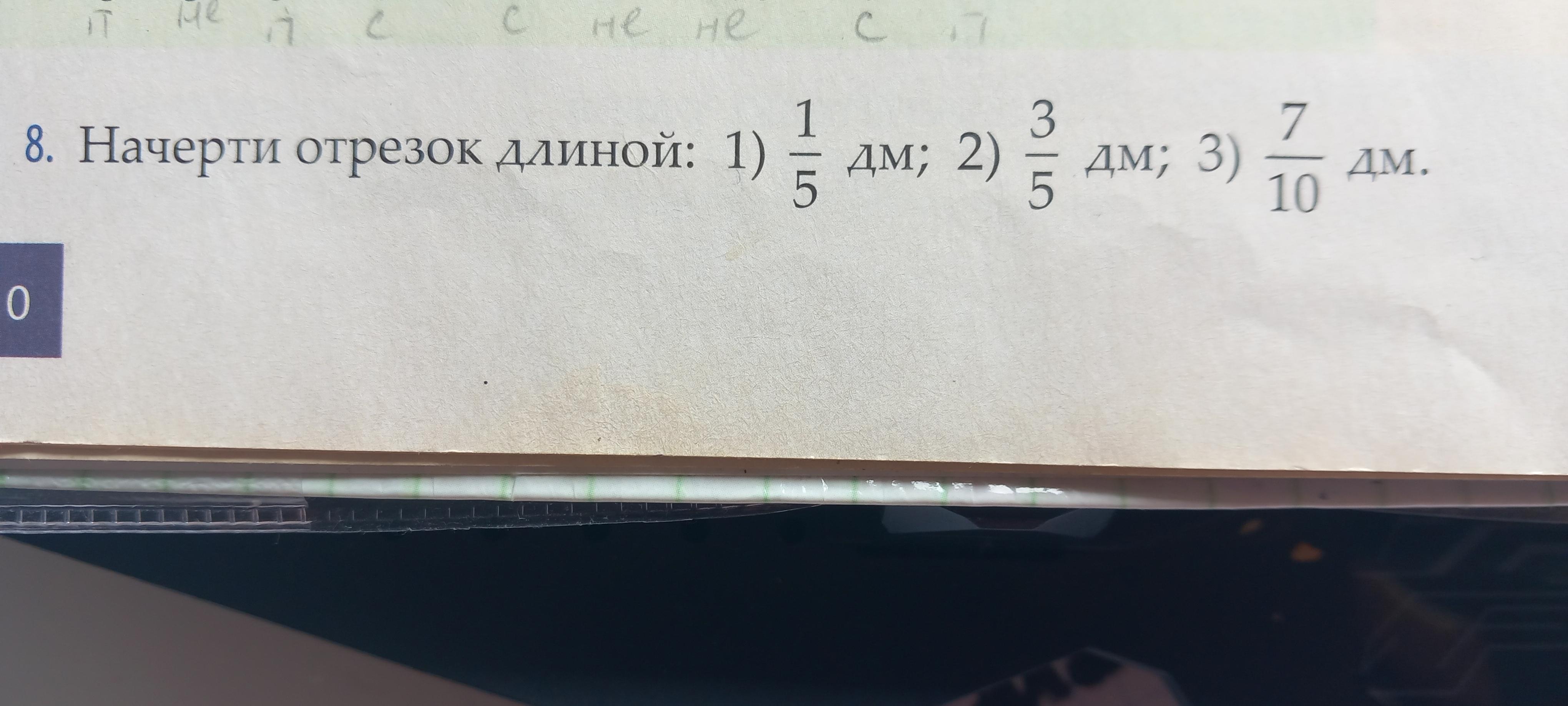 1/5 дм — 2 см. 3/5 дм — 6 см. 7/10 дм — 7 см. 1 см = 2 клеточки