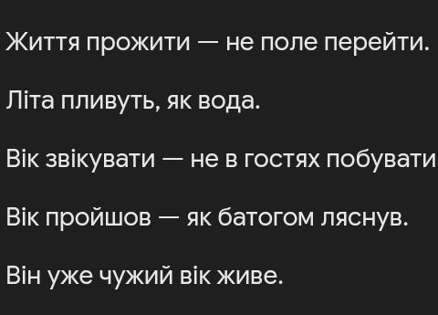 9. "Вік пройшов як батогом ляснув" означає, що життя швидко пролітає, і важливо цінувати кожен момент свого життя. Не варто зволікати з тим, що хочеться зробити, а треба діяти зараз, поки ще є час.