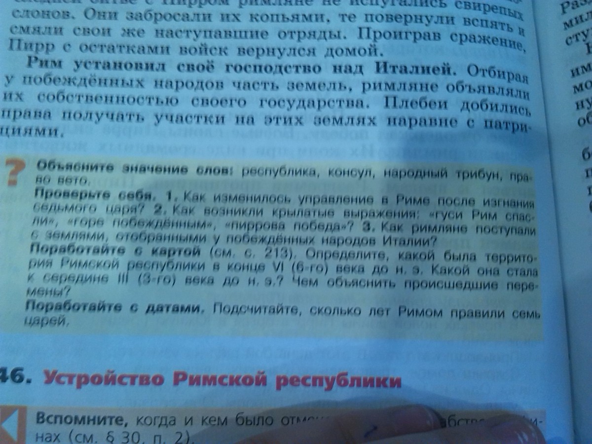 Первое возникло, когда гуси Рим спасли, когда в 390 году шла война с галлами. Галлы ночью пробирались в Рим, стража римлян спала, и только гуси (которых, несмотря на голод среди осажденных, не съели, поскольку эти птицы были посвящены богине Юноне), услышав посторонний шум, начали громко гоготать и хлопать крыльями. Так и спасли. Горе побеждённым — известное восклицание вождя галлов Бренна, обращенное им, по преданию, к побежденным римлянам, когда они отказывались уплатить наложенную на них контрибуцию в 1000 фунтов золота, тогда он бросил на весы свой меч и сказал это. Пиррова победа — победа, доставшаяся слишком дорогой ценой; победа, равносильная поражению. Происхождением это выражение обязано сражению при Аускуле в 279 до н. э. Тогда эпирская армия царя Пирра в течение двух дней вела наступление на войска римлян и сломила их сопротивление, но потери были столь велики, что Пирр заметил: «Ещё одна такая победа, и я останусь без войска»