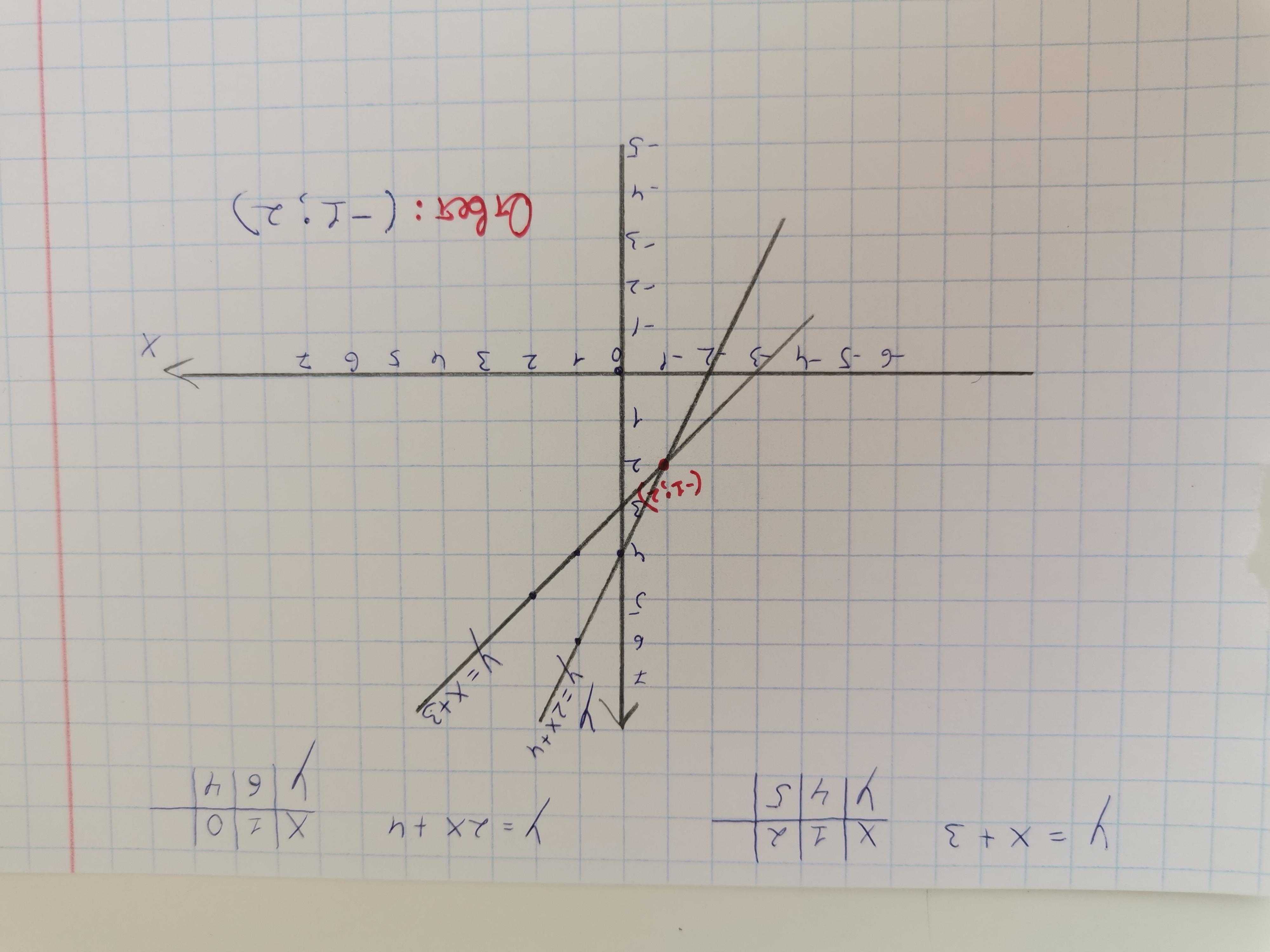 . Побудуйте в одній системі координат графіки функції та знайдіть координати точки їх перетену: у=х+3 та у=2х+4