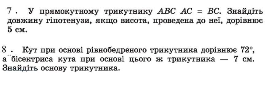 7. Для прямокутного трикутника, в якому AC = BC (отже, це рівнобедрений прямокутний трикутник), ми можемо використовувати теорему Піфагора, щоб знайти довжину гіпотенузи. Позначимо AC і BC як катети, а AB - гіпотенузу. Оскільки висота проведена до гіпотенузи, вона ділить трикутник на два подібних прямокутних трикутника.