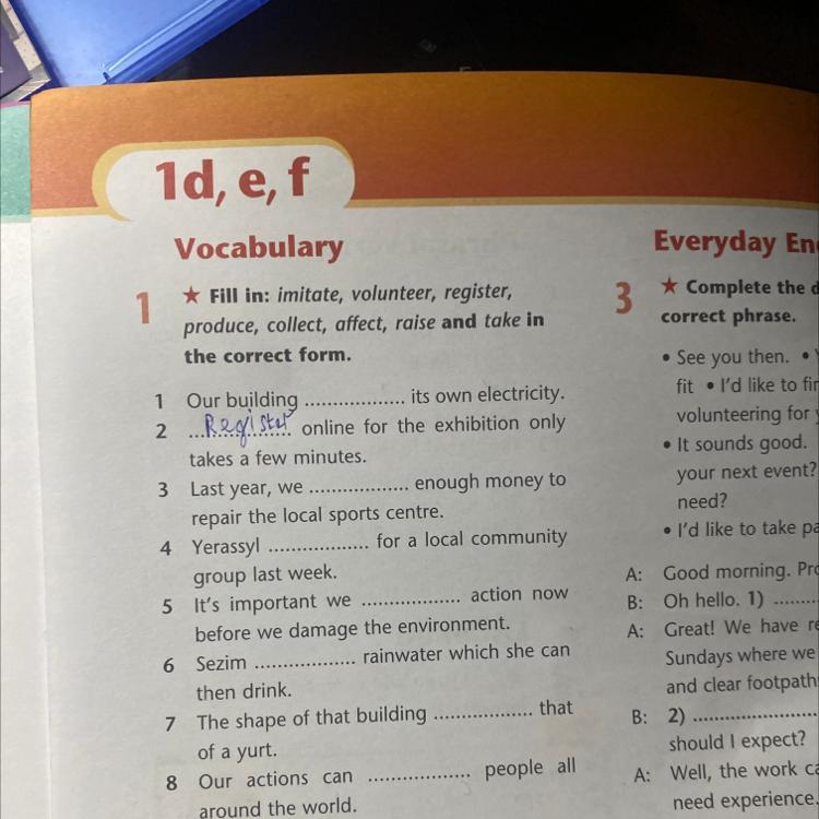 Fill in: imitate, volunteer, register,