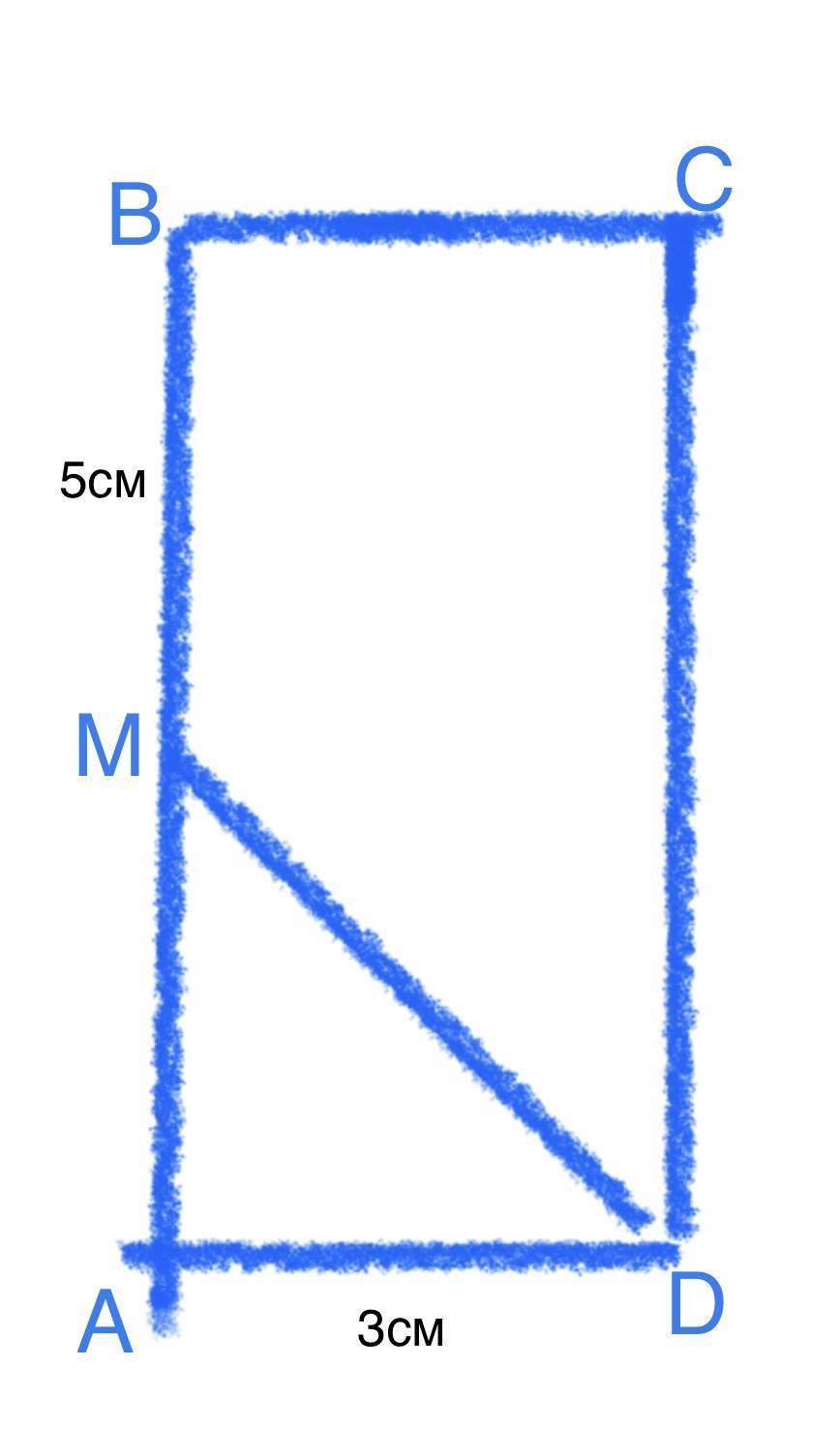 Бісектриса кута D прямокутника ABCD перетинає сторону AB в точці М, ВМ = 5 CM, AD = 3 см. Знайдіть периметр прямокутника