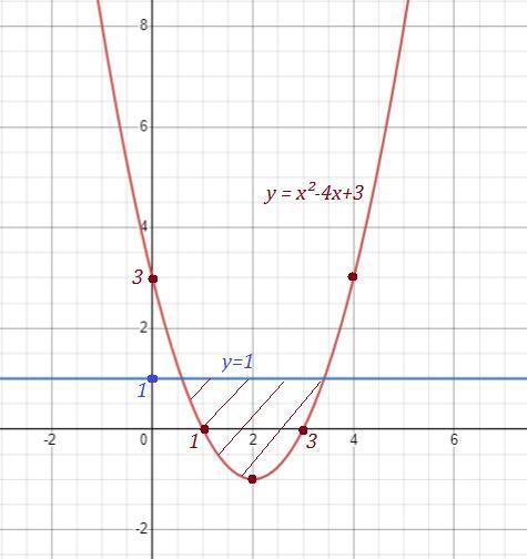 расположенных внутри параболы у = х²-4х+3 , но ниже прямой у=1 .