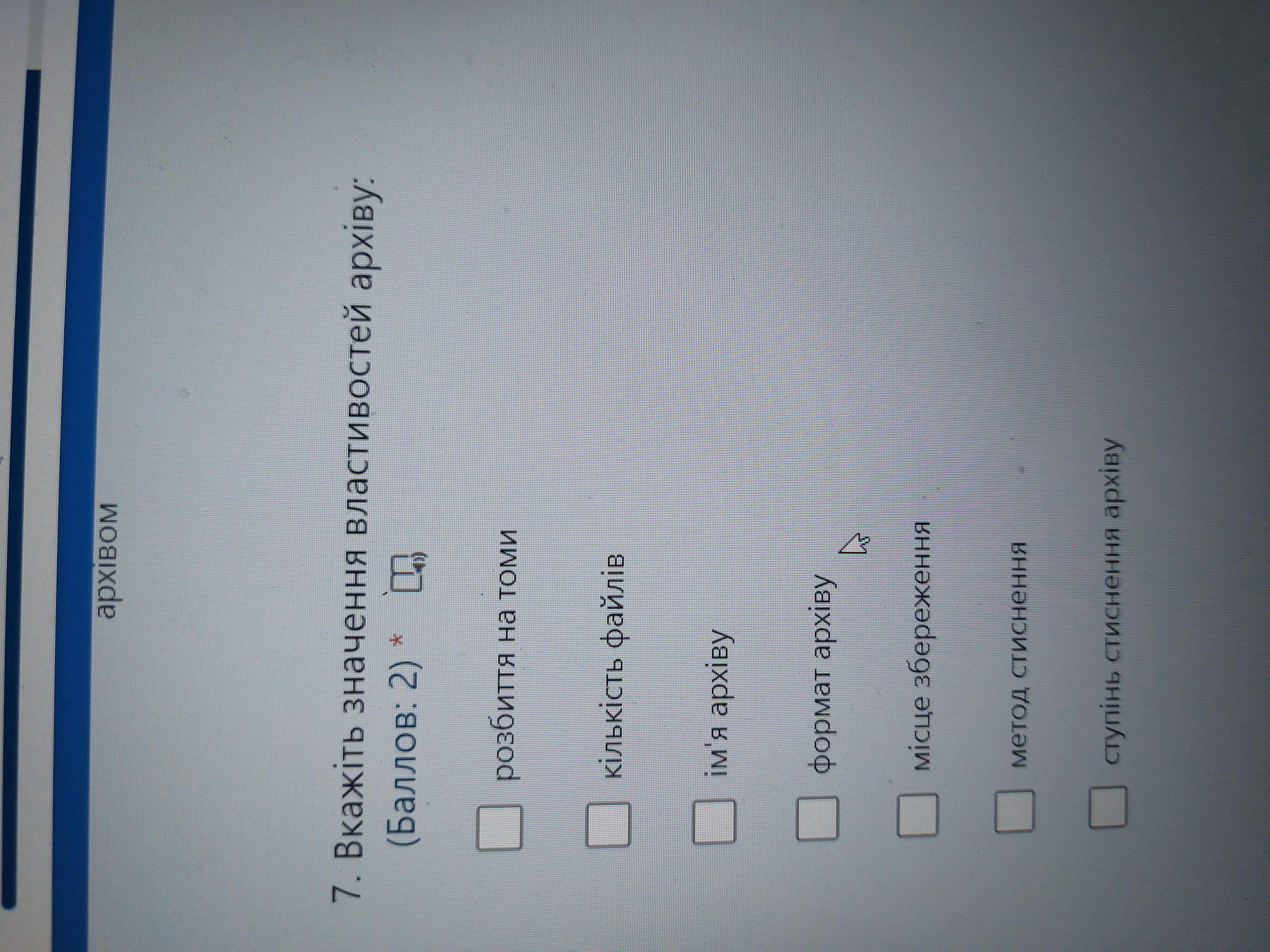 Інформатика! Вкажіть значення властивостей архіву