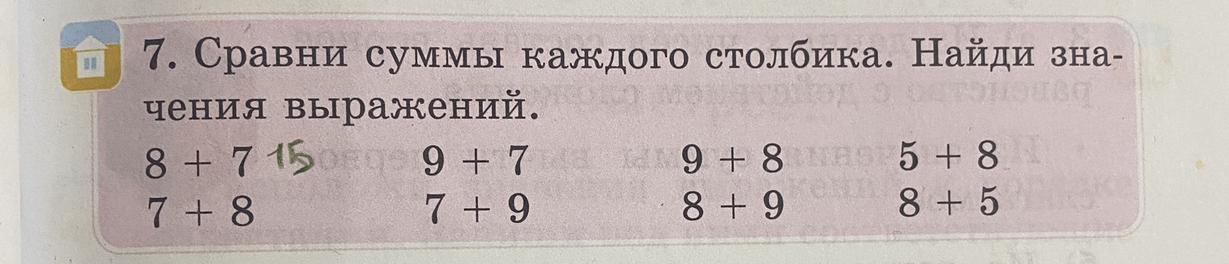 Суммы одинаковые. 7+8=8+7, 7+8=15. И так далее