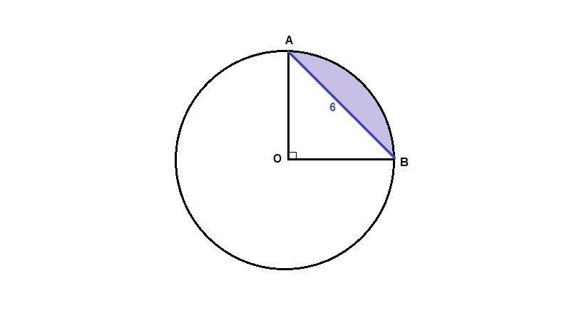 Дано: АВ=6см, угол АОВ=90. Найти: а) длину дуги АВ; б) площадь сектора АОВ; в) площадь меньшей части круга, на которые его делит хорда АВ