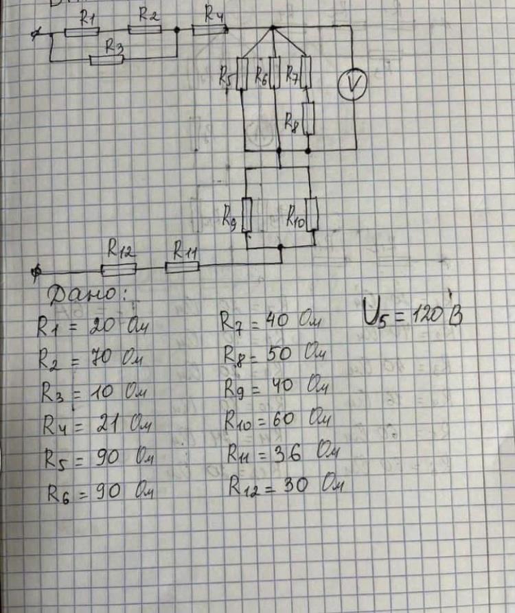 4. Обчислити загальну силу струму і напругу. (2 б.)