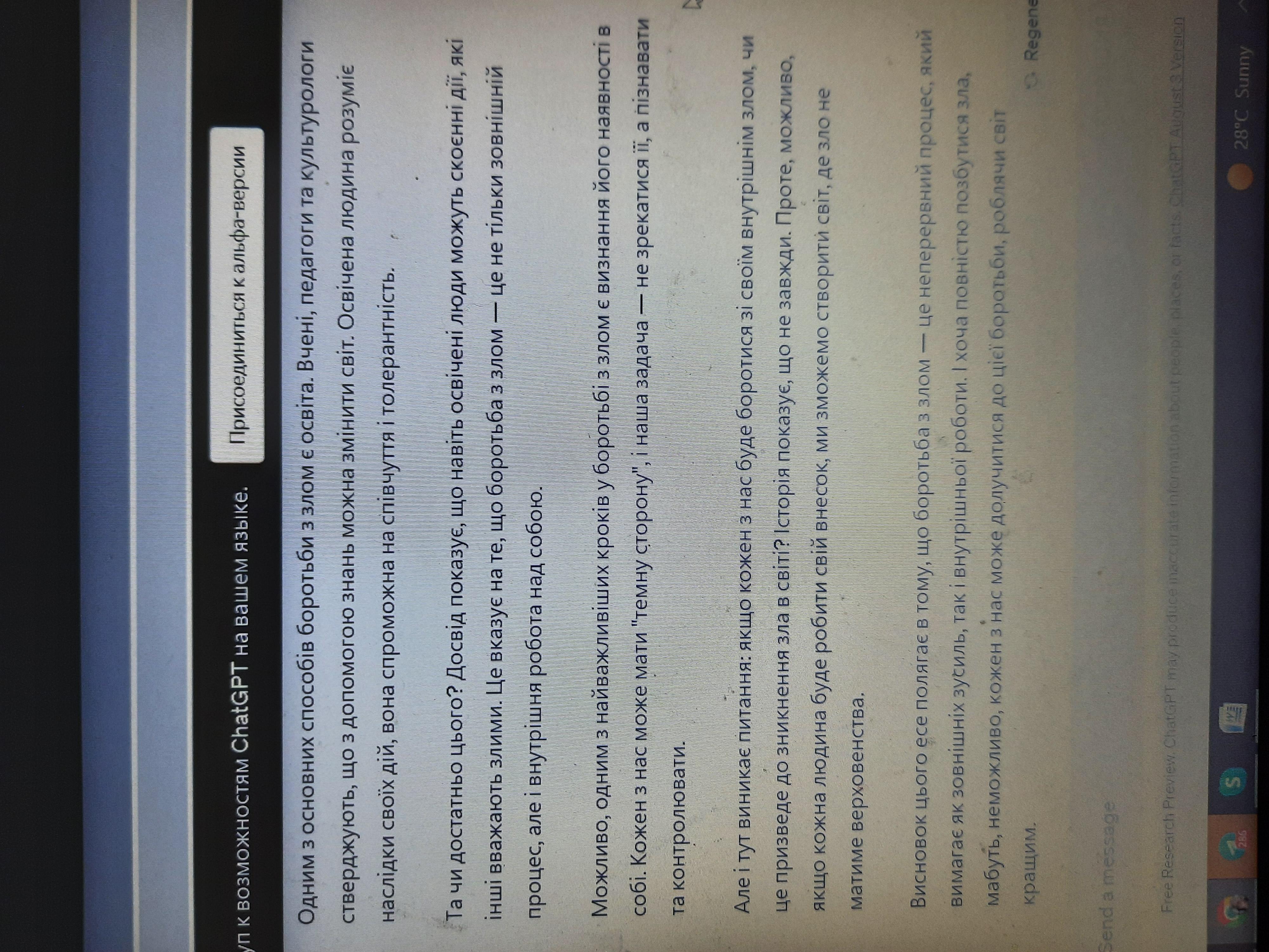 напишіть будь ласка есей на тему " чи можна побороти зло?" 10-15 речень