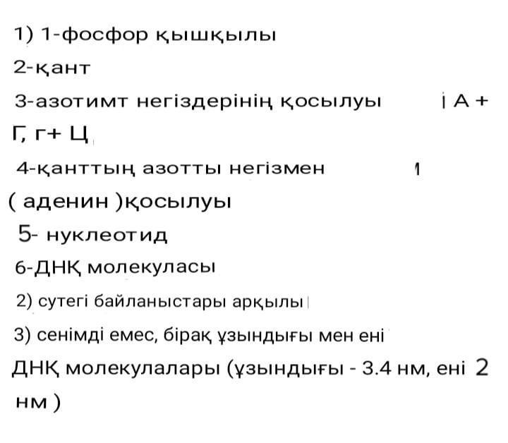 Суретке қарап, мына сұрақтарға жауап беріңдер: H.PO 1 2 3 4' A r 3' 2' AA 4 5 5' 5' 4" 3' 2' с 0 3' 2' A А ? 5' 5' 3 1' 3' 2' А r 1. 1—6-суреттерде не бейнеленген? 2. ДНҚ тізбектері бір-бірімен қалай байланысқан? 3. Әр жаққа бағытталған бағдарсызықтар нені білдіреді?