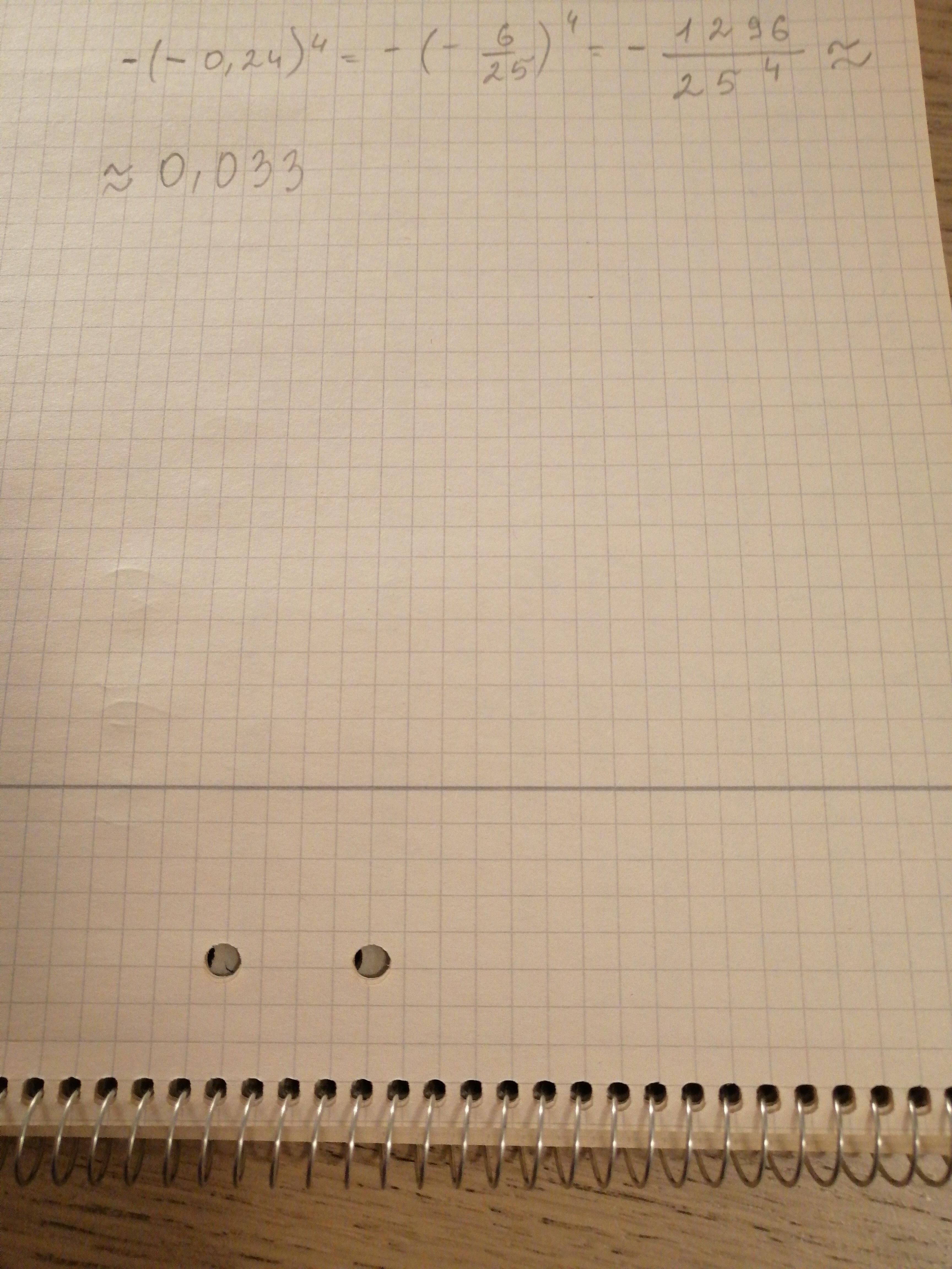 -(-0,24)⁴ = (-1)⁴ * (-0,24)⁴ = 1 * 0,00331776 = 0,00331776